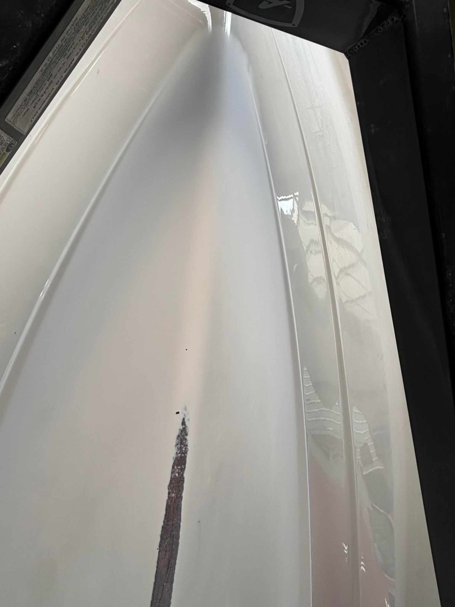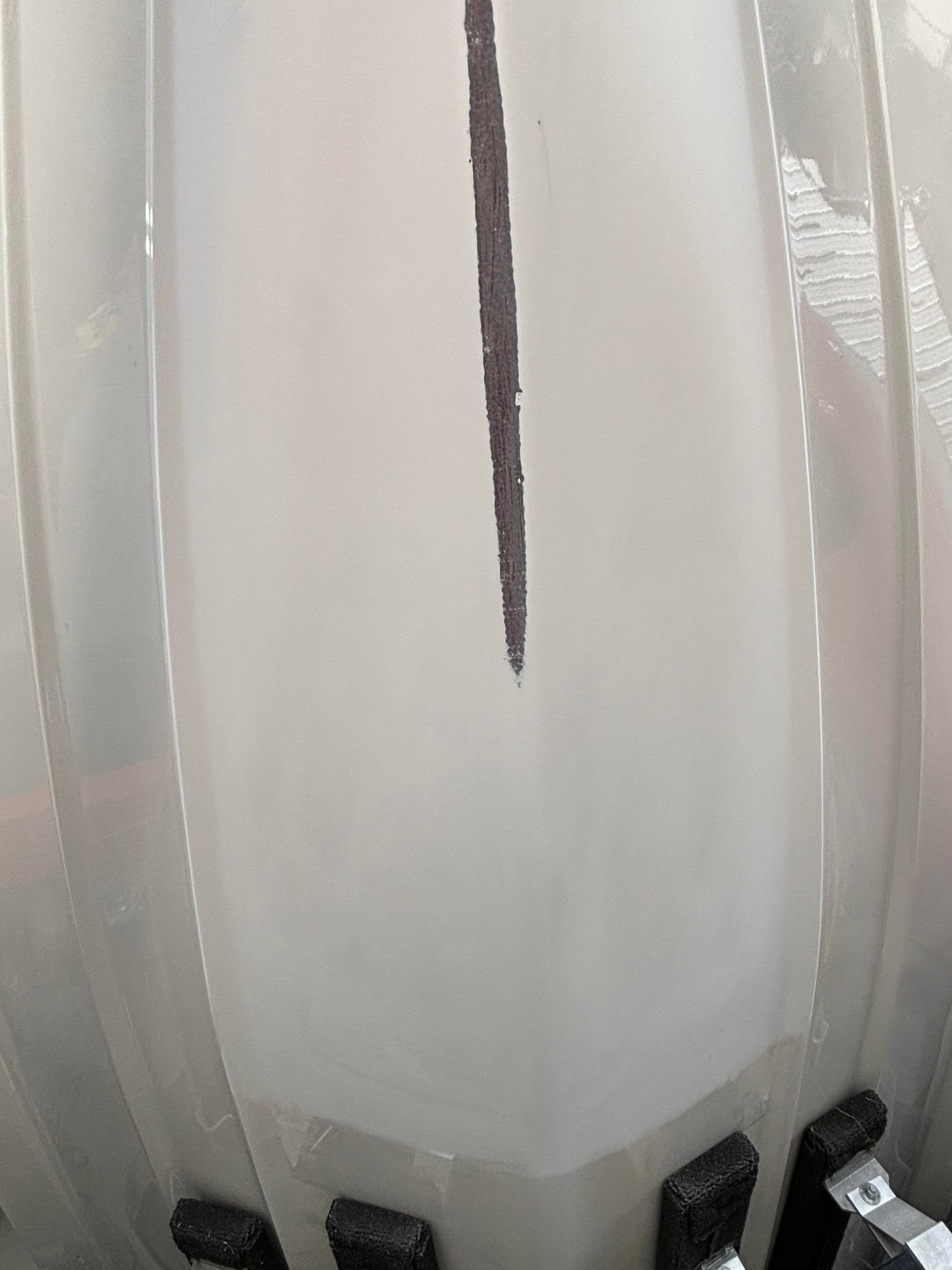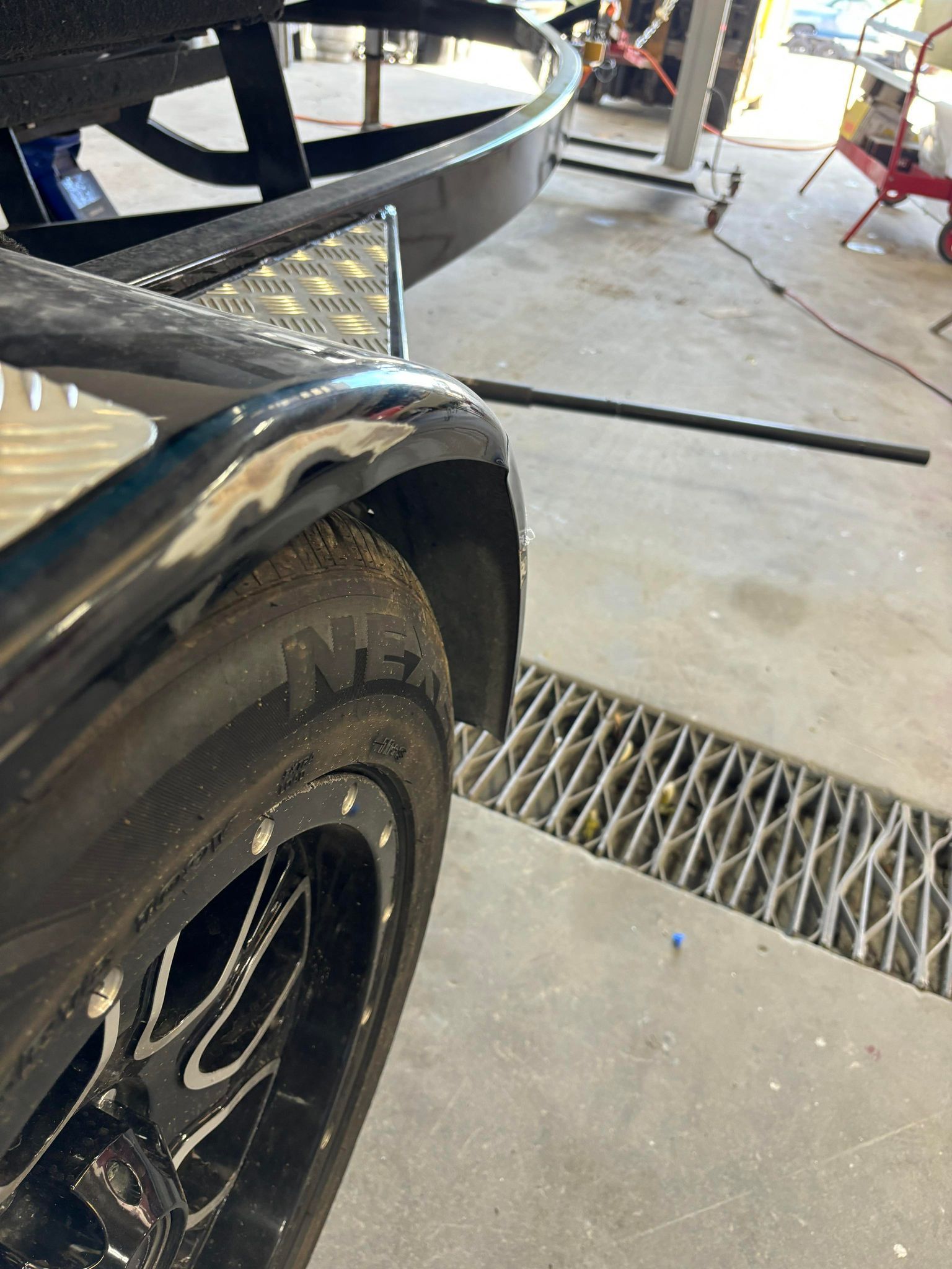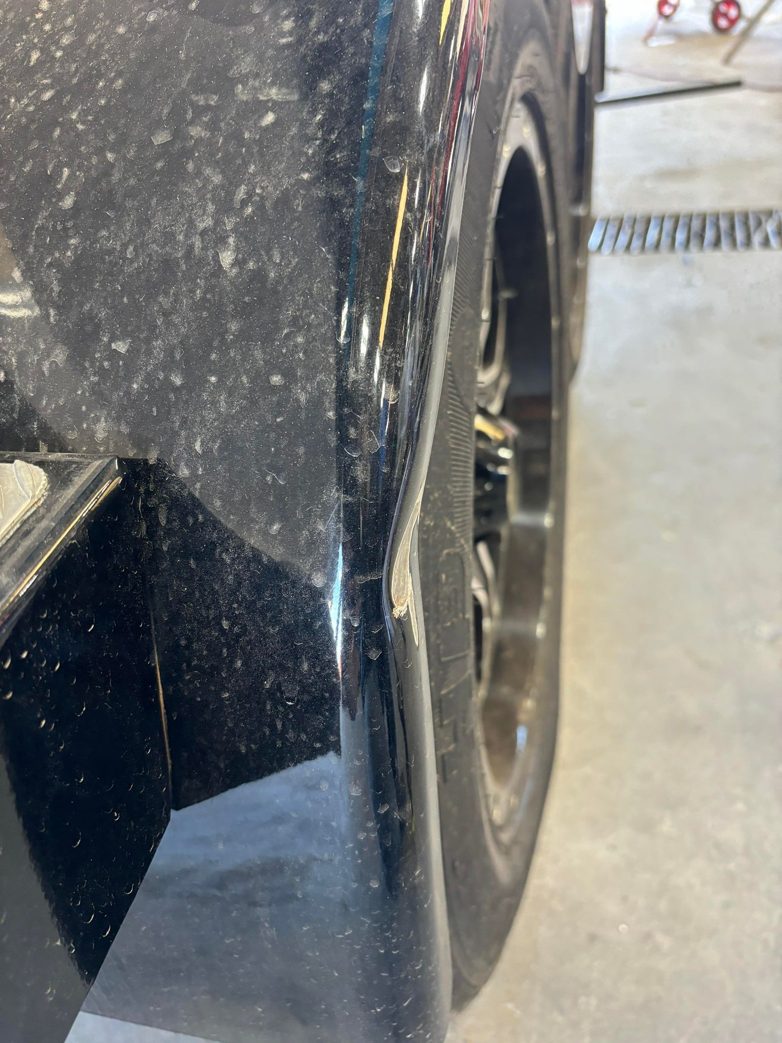 a close up of the front of a black boat